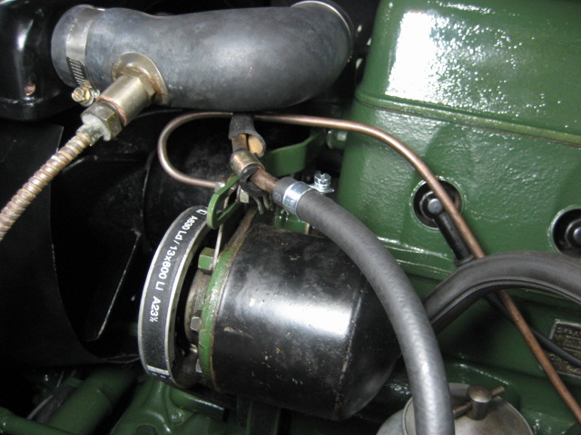 Je réinstalle le conjoncteur, avec un accumulateur neuf, mais le tube entre la pompe et le conjoncteur est très moche. C’est probablement un tube qui provient d’un autre type de voiture (peut-être une DS)