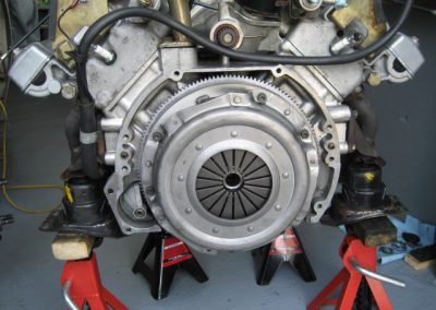 Puis Claude et Dominique reviennent chez moi pour en terminer avec l’embrayage. Ils commencent par reposer le volant moteur fraîchement rectifié